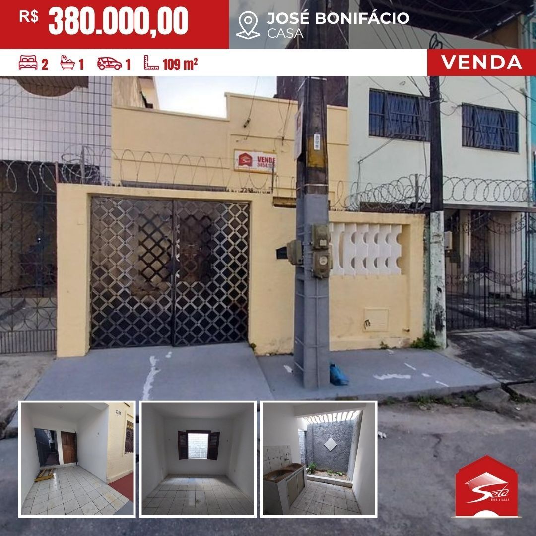 VENDE: Casa Código: CA2103 Bairro: José Bonifácio Valor: R$ 380.000,00 Rua Floriano Peixoto, 2298 - José Bonifácio - Fortaleza - CE 109 m² 2 quartos 1 Banheiro 1 Vaga Sala de Estar e Jantar Cozinha Área de Serviço Jardim de Inverno Murado Ótima localização no...